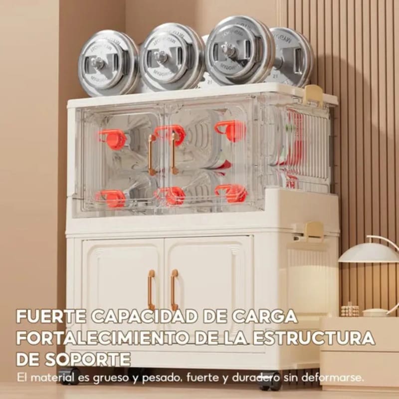 Gracias a su base con poleas integradas, este estante se desliza fácilmente de un ambiente a otro sin necesidad de levantarlo. Ideal para limpiar, reorganizar o mover tus cosas con total comodidad, manteniendo siempre el orden y la practicidad que tu hogar necesita.