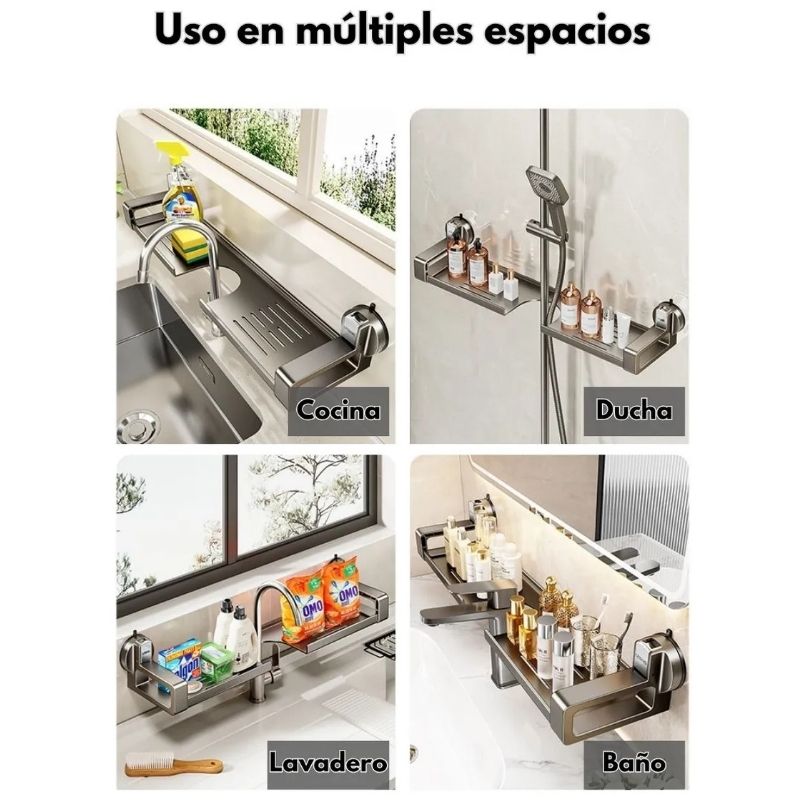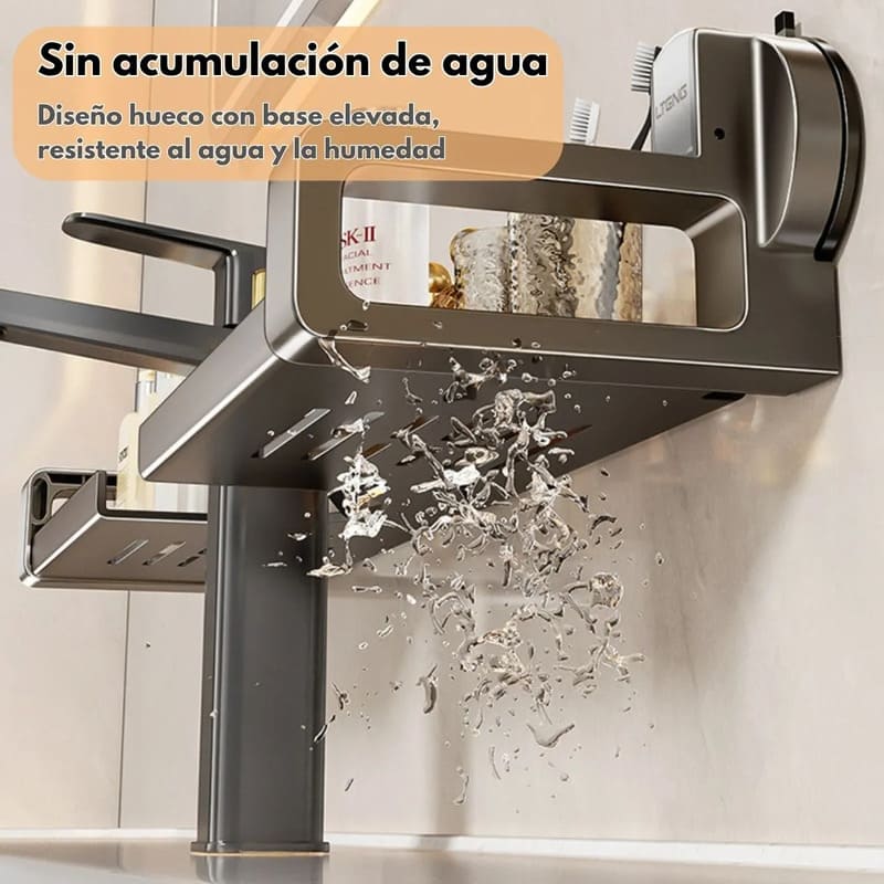 Fabricado con bandeja metálica antioxidante y laterales de plástico ABS reforzado, este organizador ofrece la combinación perfecta entre ligereza, firmeza y estética moderna. Ideal para ambientes húmedos como baño, cocina o lavadero.