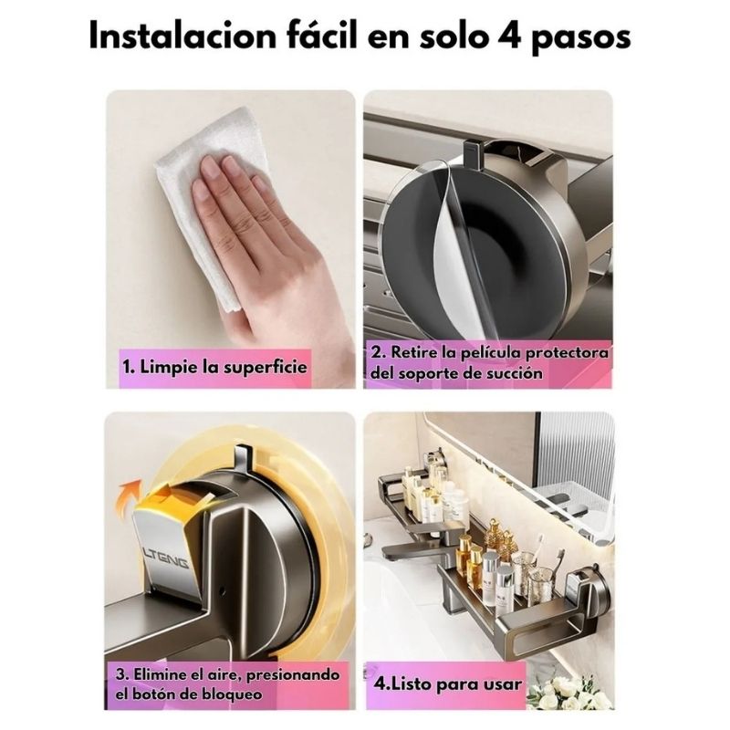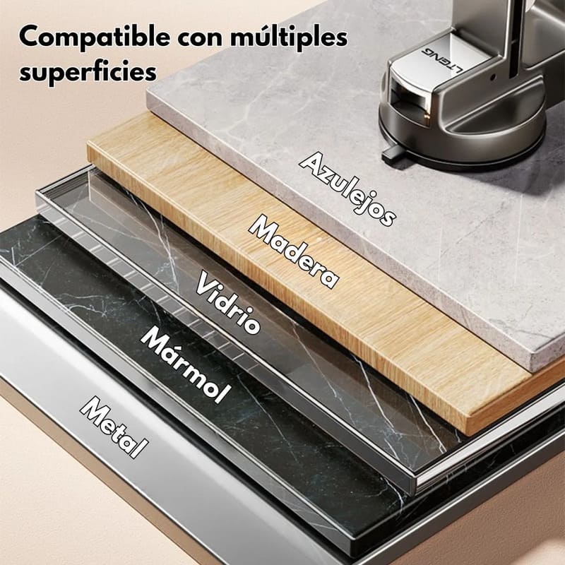 Gracias a su ventosa de succión al vacío, podés instalarlo en segundos sin dañar la pared. Solo limpiá la superficie, presioná la ventosa y ¡listo! Queda firme, estable y sin residuos al retirarlo.