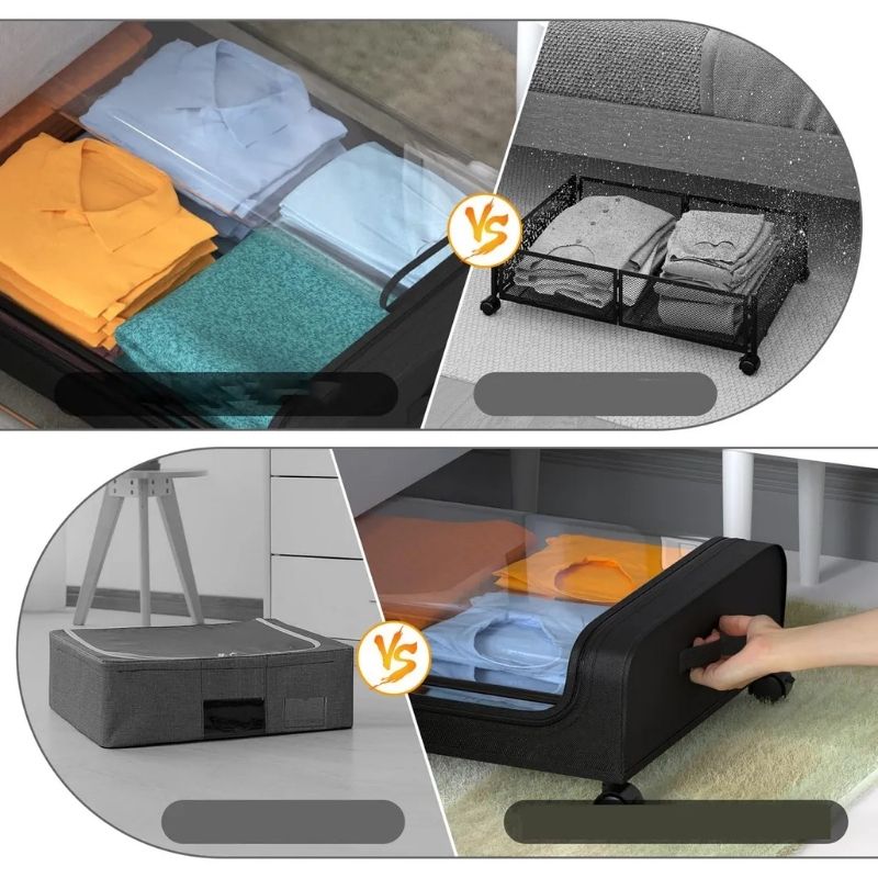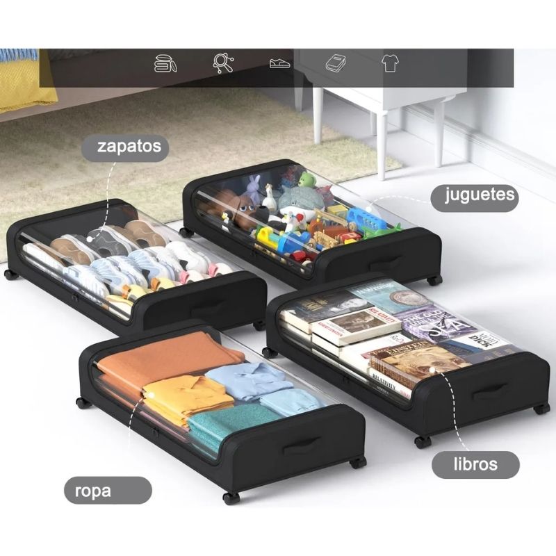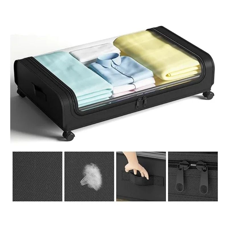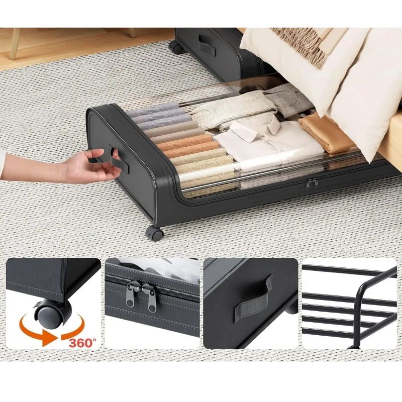 Maximizá cada rincón de tu hogar con este organizador con ruedas y tapa transparente, diseñados para mantener tu ropa, zapatos o juguetes perfectamente guardados bajo la cama. Su estructura metálica reforzada y tela transpirable aseguran orden, durabilidad y fácil acceso en todo momento.