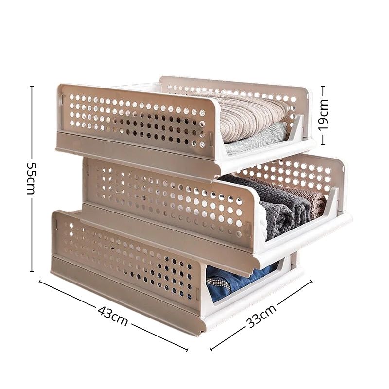 Cada unidad mide 33 cm de largo x 43 cm de ancho x 19 cm de alto, ofreciendo el equilibrio justo entre capacidad y practicidad. Su tamaño compacto permite apilar los tres organizadores del set 33 cm de largo x 43 cm de ancho x 55 cm de alto  sin ocupar demasiado espacio, manteniendo la ropa perfectamente ordenada y siempre al alcance.